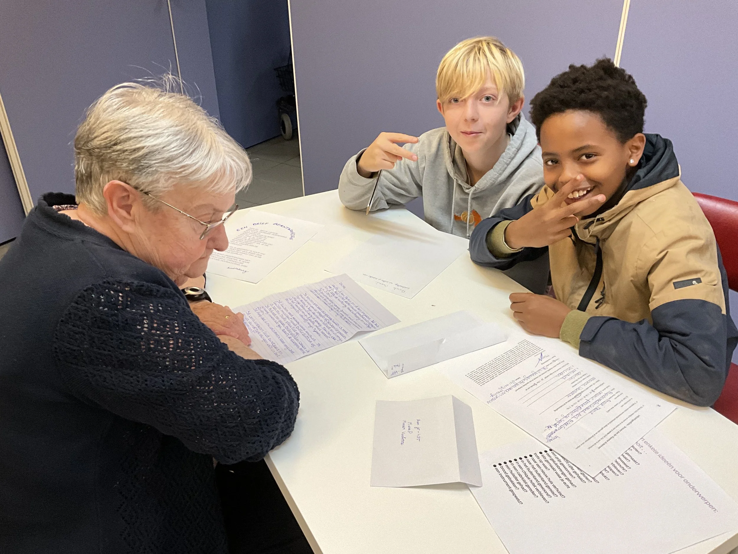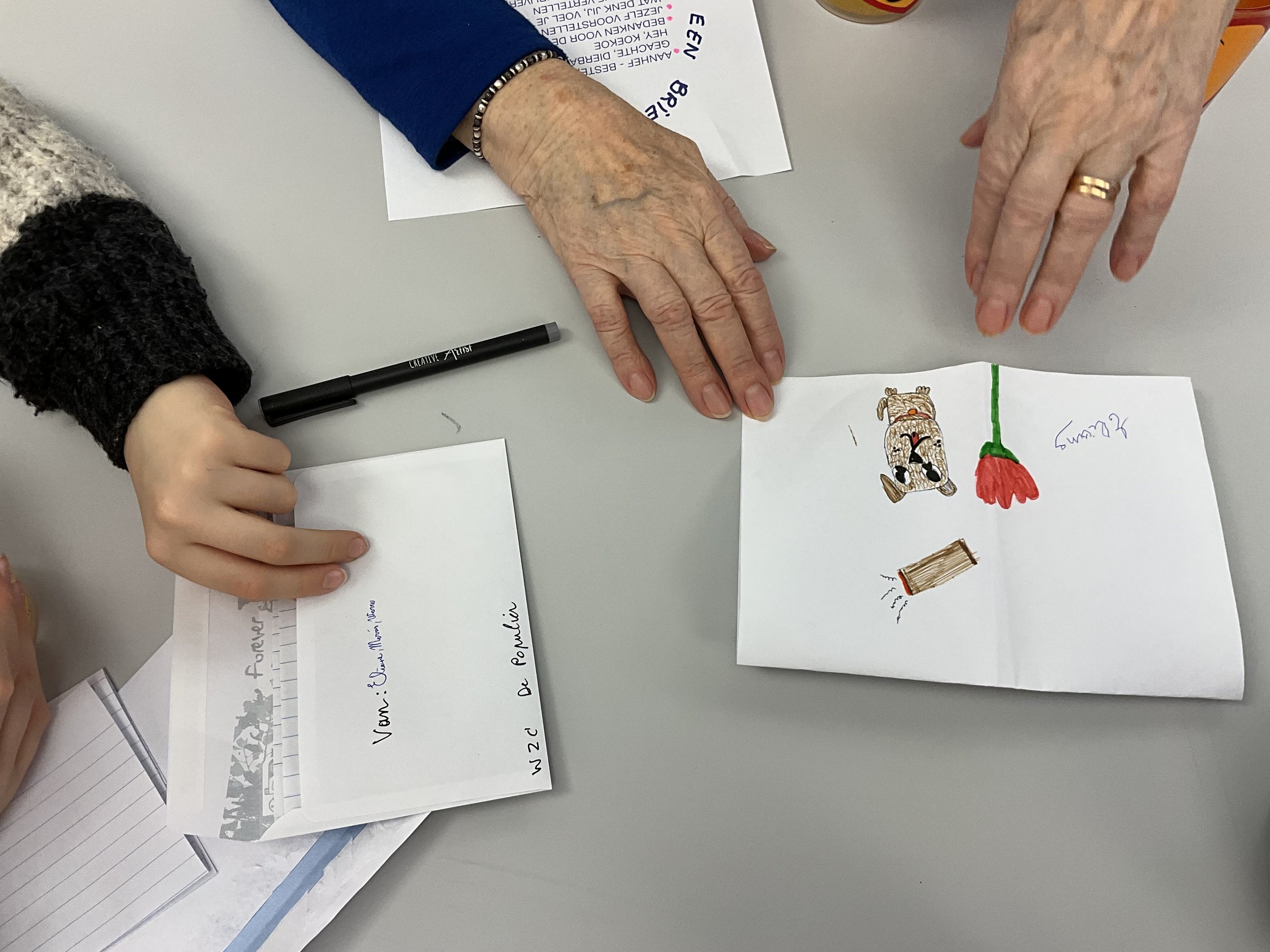 Bijzondere ontmoetingen ontstonden waar generaties samen schreven: senioren en kinderen die tijdens workshops naast elkaar zaten en ontdekten hoe een brief tegelijk een spiegel en een venster kan zijn.